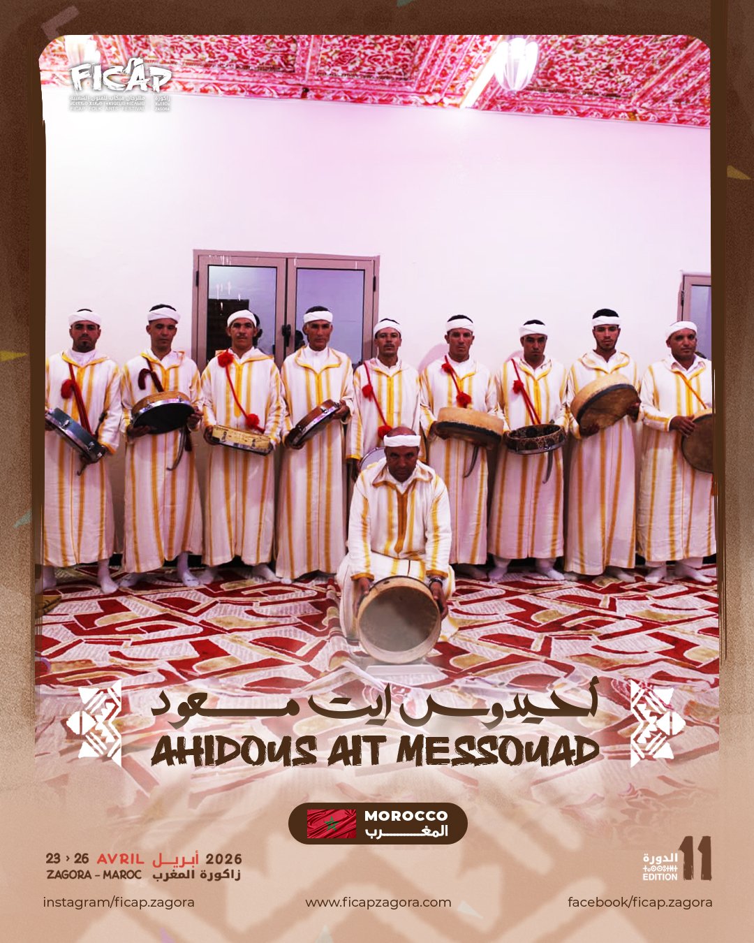 Ce festival, qui entame maintenant sa onzième édition, est un message d’amour et d’amitié entre les peuples. L’héritage des oasis accueille l’héritage du monde pour se regarder dans le miroir de l’autre, et essaie d’enraciner l’idée que ce qui rassemble et unit les nations, c’est l’art et la créativité.